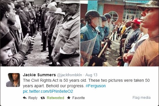 That tweet summed it up perfectly – nothing has changed in 50 years. Police don’t arrest whites at the same rate, they don’t stop and frisk at the same rate. Ask any black person about driving while black. The statistics show it in NYC stop and frisk.